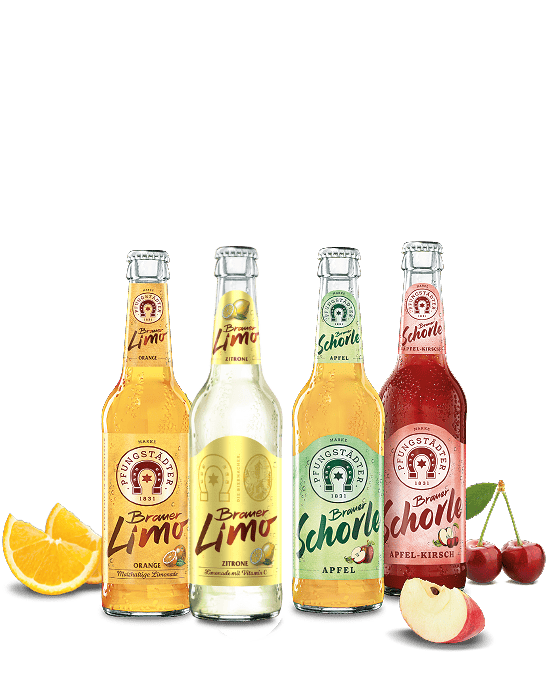 Unsere Brauer Schorle Apfel-Kirsch ist der pure Genuss: nach süßer Kirsche und frischen Äpfeln. So schmeckt Heimat.